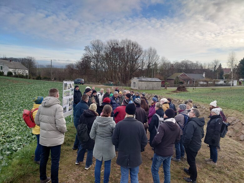 Am 25. November 2025 fand in Schrebitz, einem Ortsteil der Gemeinde Jahnatal, zum ersten Mal der Praxistag »Ländliche Neuordnung« statt. Rund 40 Teilnehmende nutzten die Gelegenheit, direkt vor Ort mit Vertreterinnen und Vertretern der Teilnehmergemeinschaft sowie der Oberen Flurbereinigungsbehörde ins Gespräch zu kommen. Dabei standen Fragen zur Planung, Umsetzung und Finanzierung verschiedener Maßnahmen im Mittelpunkt.
