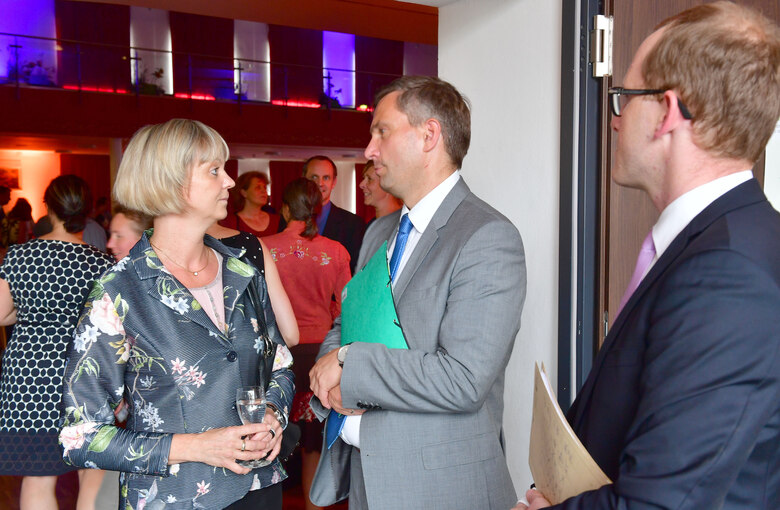 Touristiker unter sich: Wirtschaftsminister Martin Dulig (Bildmitte) im Gespräch mit Veronika Hiebl (links), die ab Mai 2019 zur neuen Geschäftsführerin der Tourismus Marketing Gesellschaft Sachsen bestellt ist.