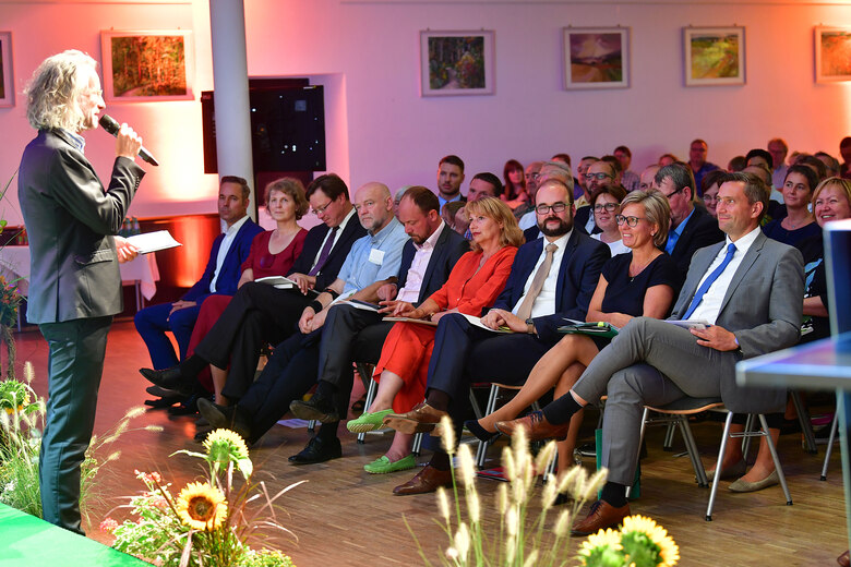 Moderator Stephan Bischof begrüßte auf der Veranstaltung die Mitglieder der Sächsischen Staatsregierung und aus dem Sächsischen Landtag.